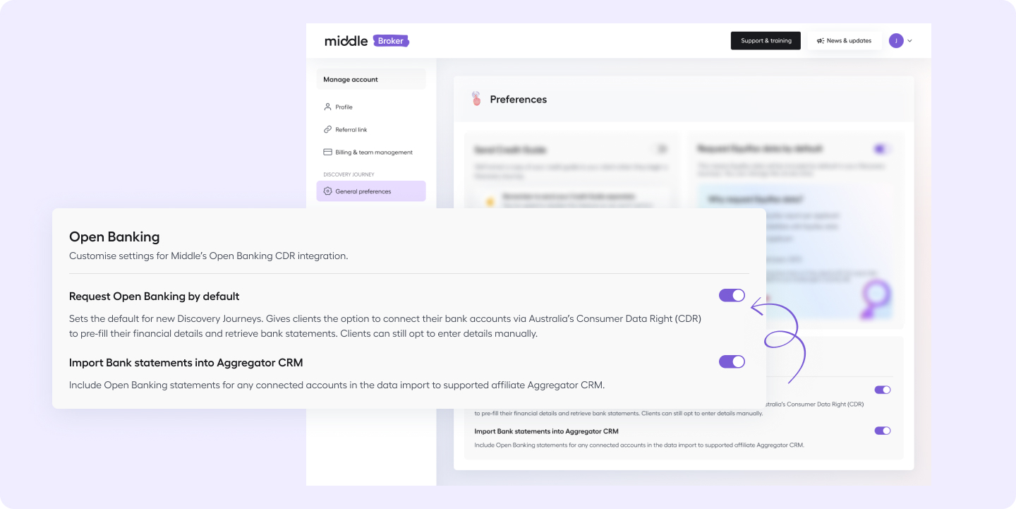Request Open Banking by default: This'll toggle off the Open Banking option when sending out a Discovery Journey / fact-find. You can still manually turn this back on per Discovery Journey you send during the Create Discovery Journey process.